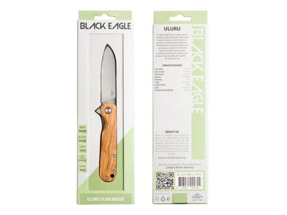 De Black Eagle Uluru is een moderne klassieker die zich beroept op traditionele ontwerpen en tegelijkertijd moderne materialen en technieken gebruikt om een eersteklas snijervaring te bieden. Het brede lemmet is geweldig voor buiten en dagelijks gebruik. Vernoemd naar de berg met de platte top in het hart van Australië, vormt deze religieuze plek een imposant silhouet tegen de felblauwe hemel. De Uluru is eenvoudig één handig open te klappen door zijn flipper, vervolgens houdt de linerlock het mes stevig in geopende stand. Het Sheepsfoot lemmet is gemaakt van 8Cr13MoV staal. Een staalsoort met uitstekende taaiheid en zeer goede herslijpbaarheid. Verder is deze afgewerkt met een satijnen afwerking, dit geeft de Uluru een hoogwaardige uitstraling. De lange relatief rechte snede van een Sheepsfoot maakt dit lemmet profiel uitermate geschikt voor snijdende handelingen. De vorm van de snede vergroot het oppervlaktecontact met het materiaal en zorgt voor meer stabiliteit en nauwkeurigheid. Het mes is uitgerust met een deep-carry draagclip en een koordoog.