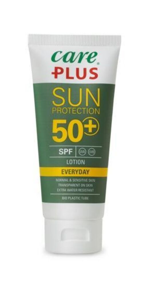 Care Plus zonnebrand - Everyday Lotion is een zonnebrandlotion die je huid perfect beschermt tegen UV-straling. Deze professionele zonnebrandlotion is waterproof en heeft een zeer hoge beschermingsfactor. De lotion is klinisch getest en zelfs geschikt voor de gevoelige kinderhuid. De lotion is verpakt in een handige kleine tube van 100 ml: deze past gemakkelijk in elke tas en mag mee in je handbagage tijdens het vliegen.