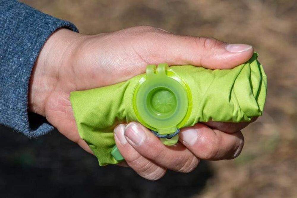 "ideaal kussentje voor in je kampeerrugzak of fietstas"