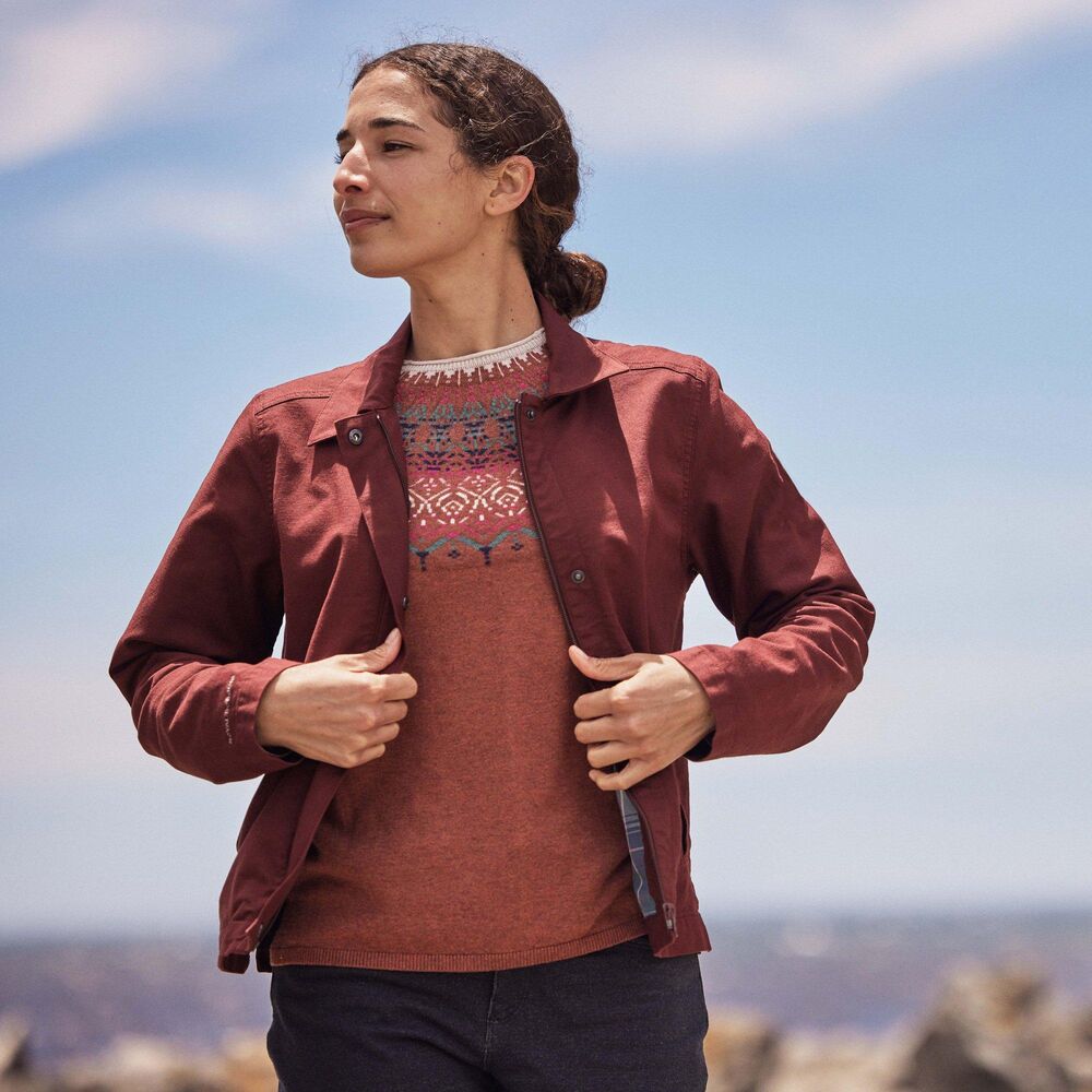 De Westlands Fairisle Crew van Royal Robbins is een stijlvolle en comfortabele trui, gemaakt van een duurzame mix van merinowol met OysterYarn™.